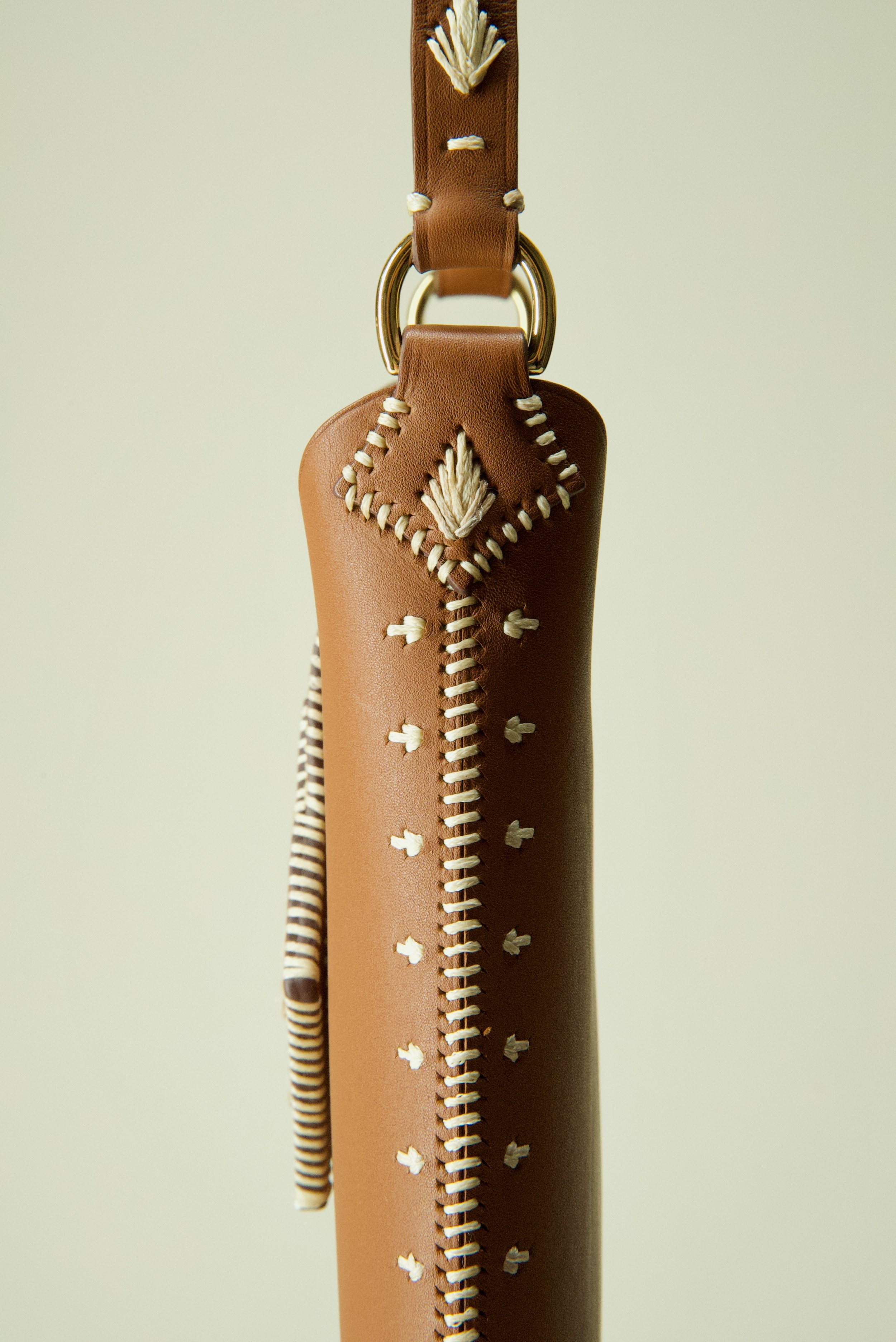 Bungabunga is a heritage technique that adopts embroidery-like features as a way of stitching. It utilises thick, wax-coated thread to highlight the stitching instead of blending in. to finish, the thread is treated with a light flame that melts all loose ends together and gives it a light sheen.